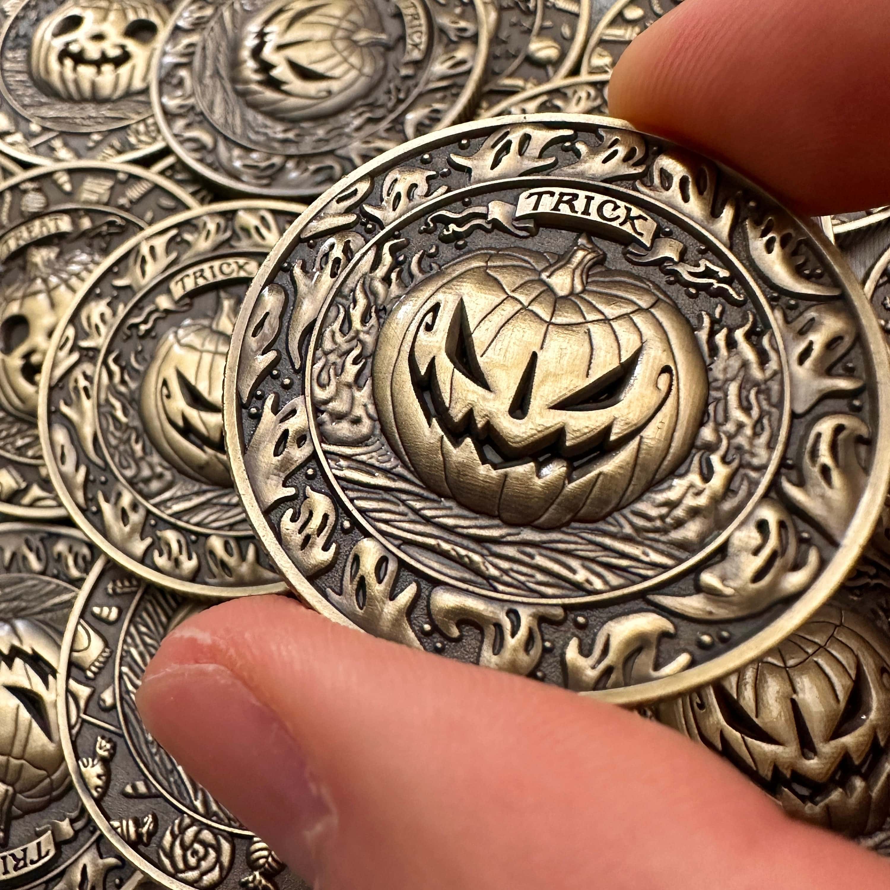When you're torn between choosing "Trick" or "Treat" during Halloween festivities, simply flip this coin and let fate decide—just like leaving it to a higher power! And when not used for decision-making, it's a delightful item to hold and admire.