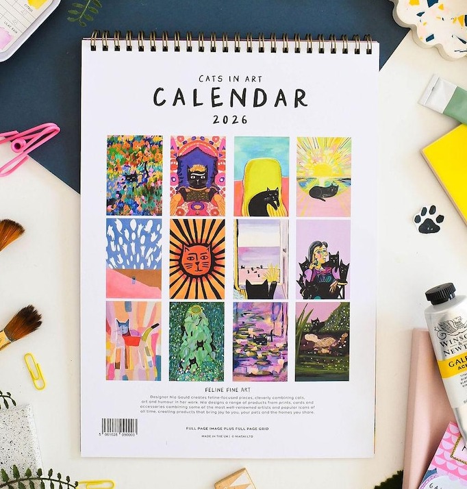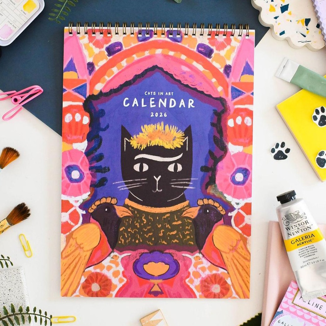From regal floral-crowned kitties to whimsical patterns inspired by great art movements, this calendar turns each month into a visual delight for cat lovers and art enthusiasts alike.