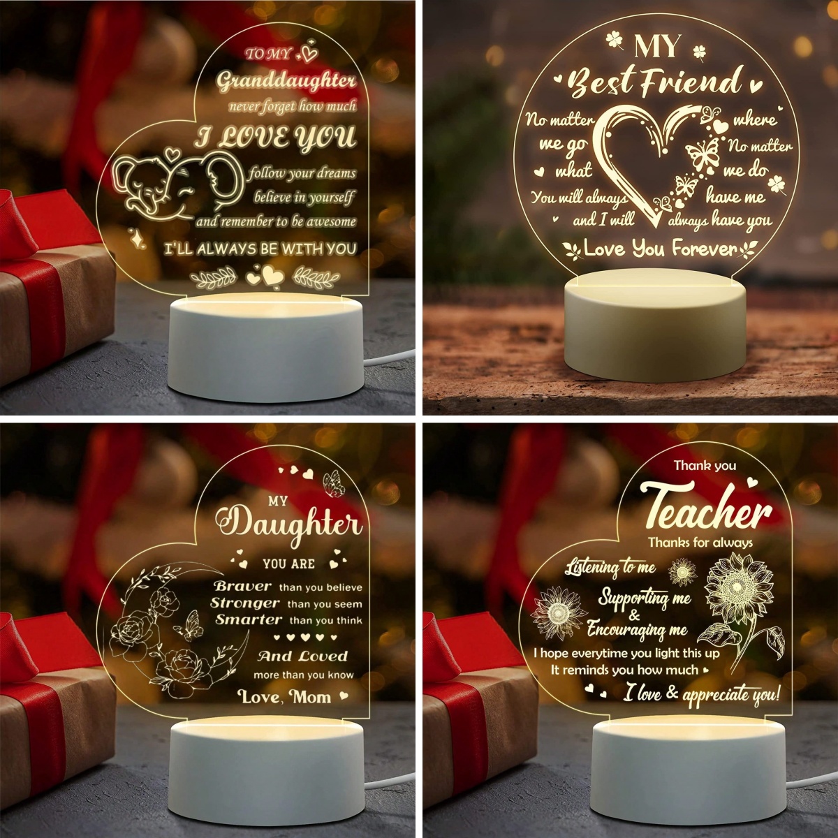 Looking for a special gift that will make a lasting impression? Sending our Acrylic Nightlights for your loved people are the perfect choice - for bestie, mom, grandma, aunt, daughter, granddaughter, sister, best friend, teacher. You'll find what you want💖