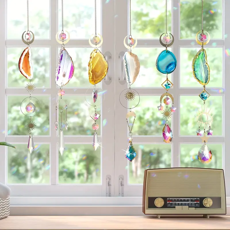 🎐Step into a realm where nature's brilliance meets artistic design with these handmade Agate Crystal Suncatchers. Expertly crafted using genuine agate slices, each suncatcher radiates with a unique charm, channeling the beauty of the Earth right into your living space.✨
