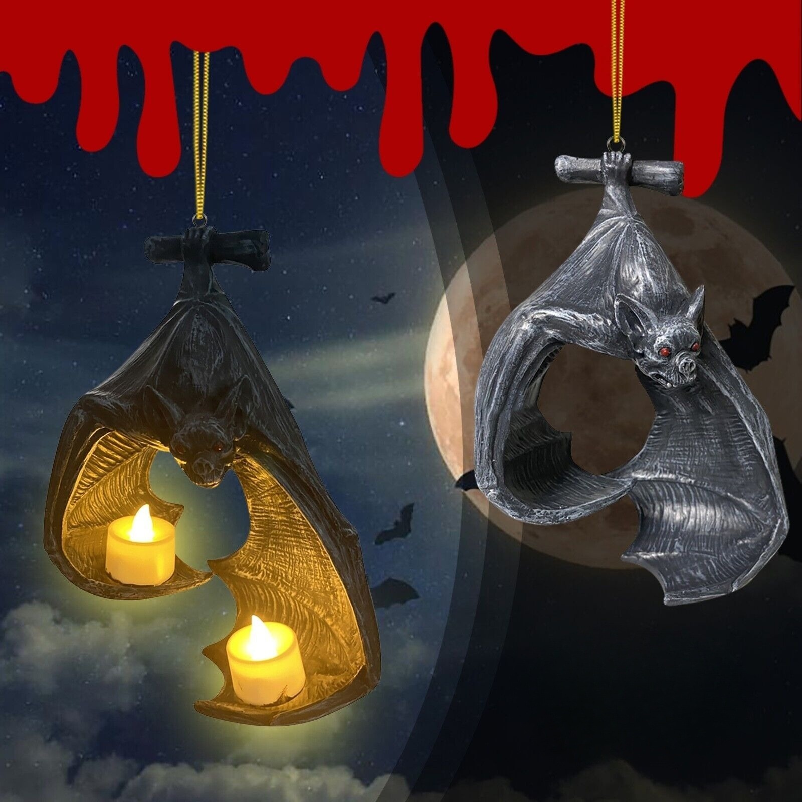 🦇Bring a touch of enchantment to your home with our Bat Tealight Holder Decor. Illuminate your space with a warm and cozy glow while adding a festive atmosphere to any occasion. 🕯️