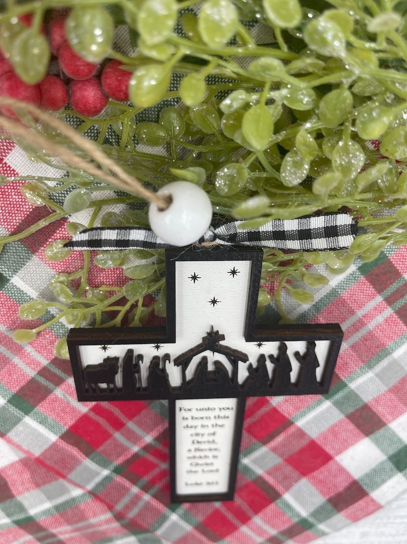 Crafted with intricate detail, the Bible Decoration - Nativity Cross symbolizes the birth of Jesus, making it a perfect gift for devout followers.