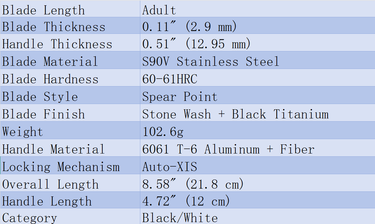 Despite its nearly 9-inch overall length, this knife weighs a mere 3.6 oz. The handle is precision-machined from 6061 T-6 Aircraft Aluminum with elegant Carbon Fiber inlays. It’s strong, grippy, and so light you’ll forget it’s in your pocket.