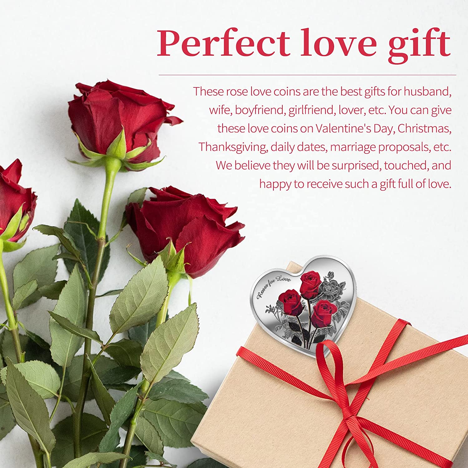 ❤️Perfect love gift: These rose love coins are the best gifts for husband, wife, boyfriend, girlfriend, lover, etc. You can give these love coins on Valentine's Day, Christmas, Thanksgiving, daily dates, marriage proposals, etc. We believe they will be surprised, touched, and happy to receive such a gift full of love.