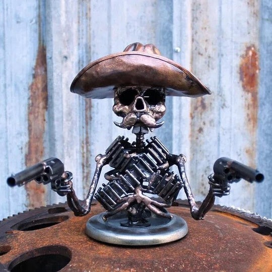 💀 Super cool design: The Cowboy Skull Gunner is based on the design of an outlaw pirate, built all over from alloy and ready for a duel with his trusty double guns and bullets. Made of pure hand-cast cowboy skull gunner makes your car look really cool and stand out. Its design will leave a lasting impression.