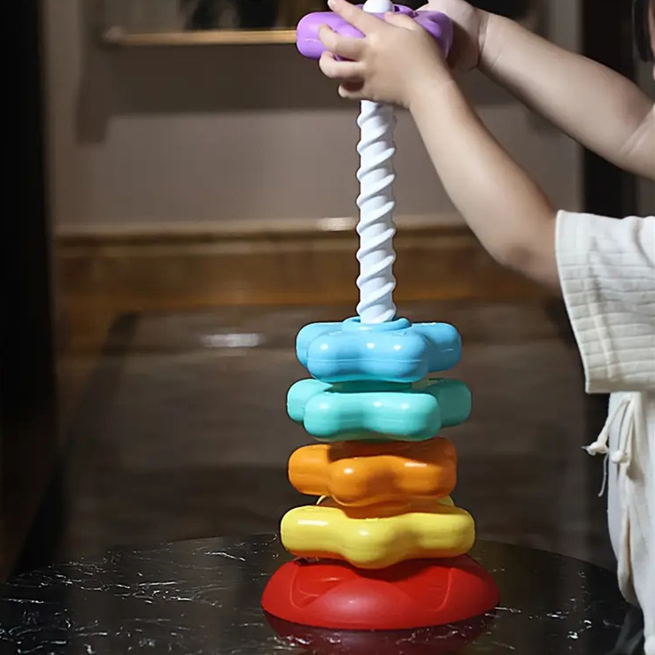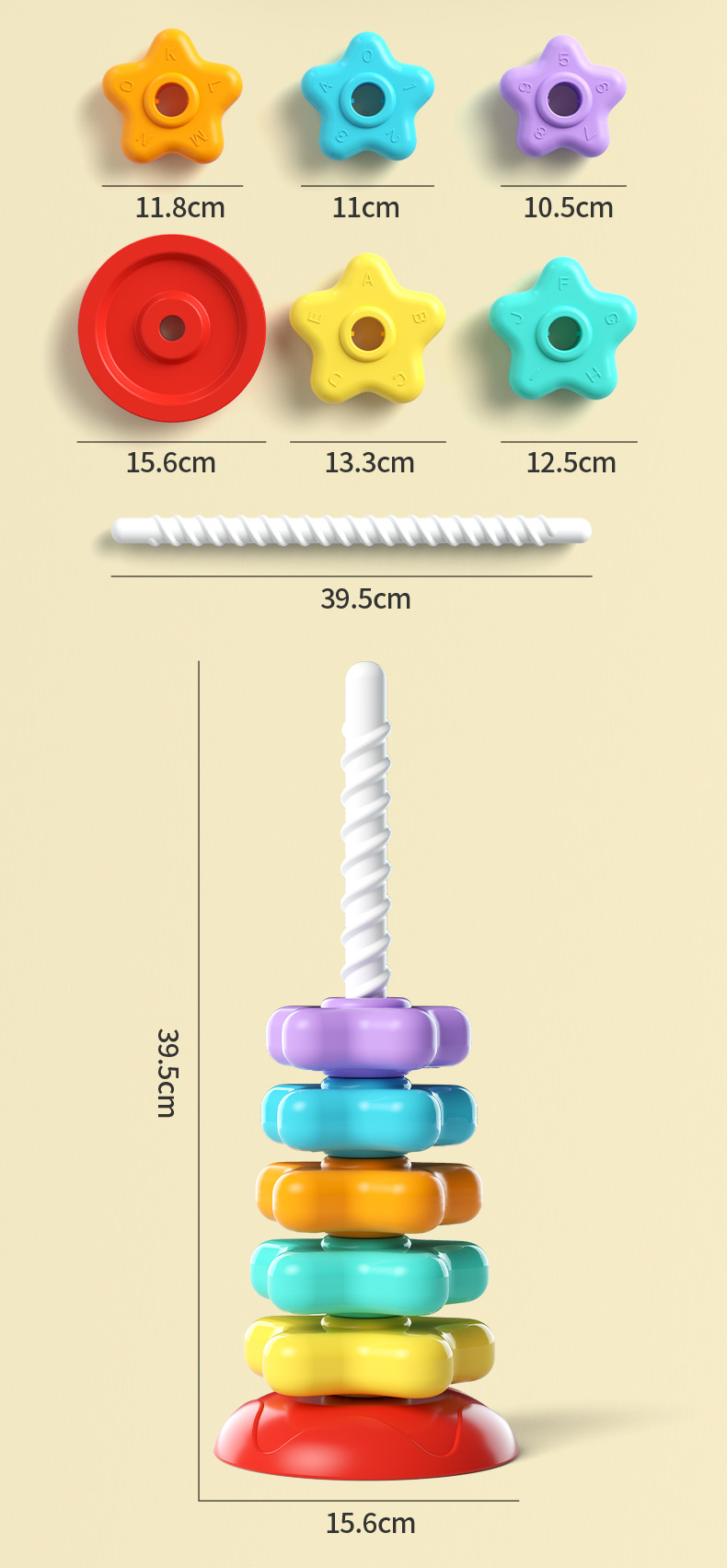 Weighted bottom prevents tipping (unlike other stacking toys!)