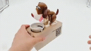 Drop some coins into his dish and he immediately goes for it, with a dog-like enthusiasm that you'll love! The coins are stored inside the box after they "eats" them up, making it a great way to promote savings for all ages!