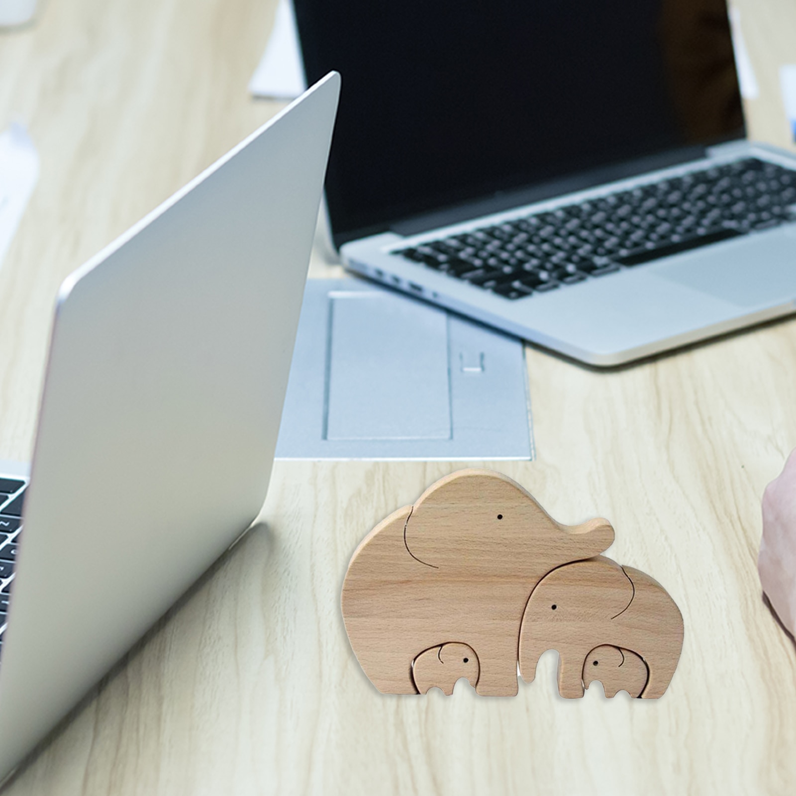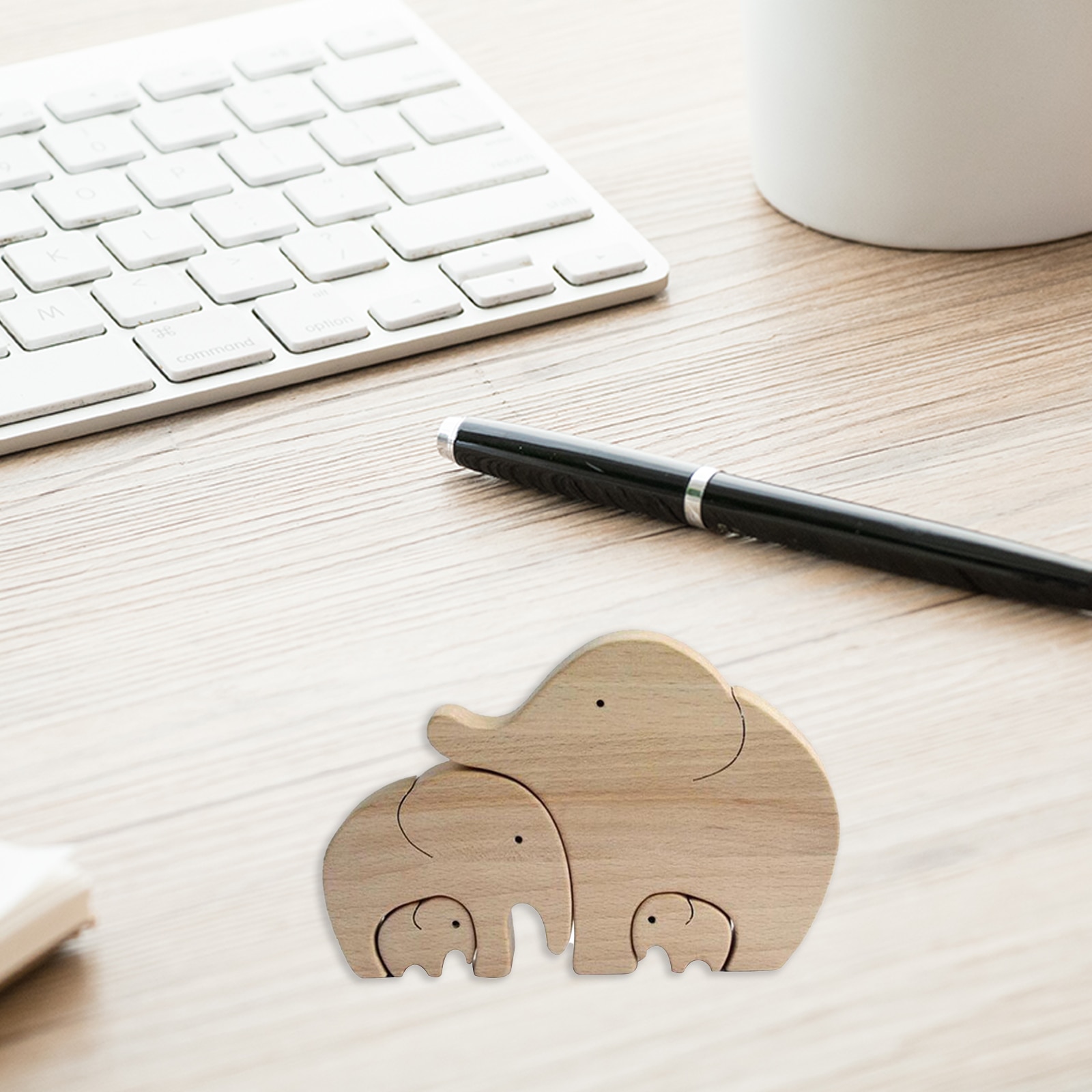 - The wooden ornament is describes a mother elephant is standing with her baby in her arms, which is warm and harmonious.