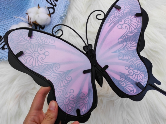 This beautiful butterfly is made of premium iron&glass and handcrafted body structure that no matter the metal wings frame or blue glass artistic pattern are all exquisite