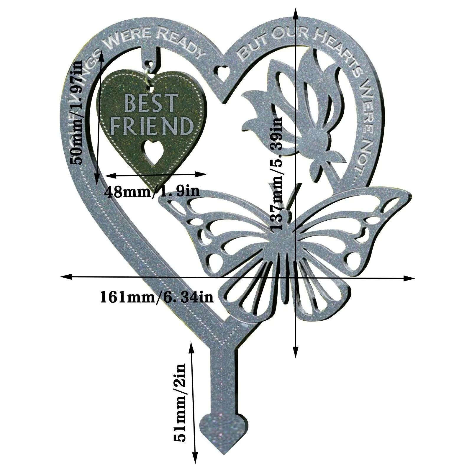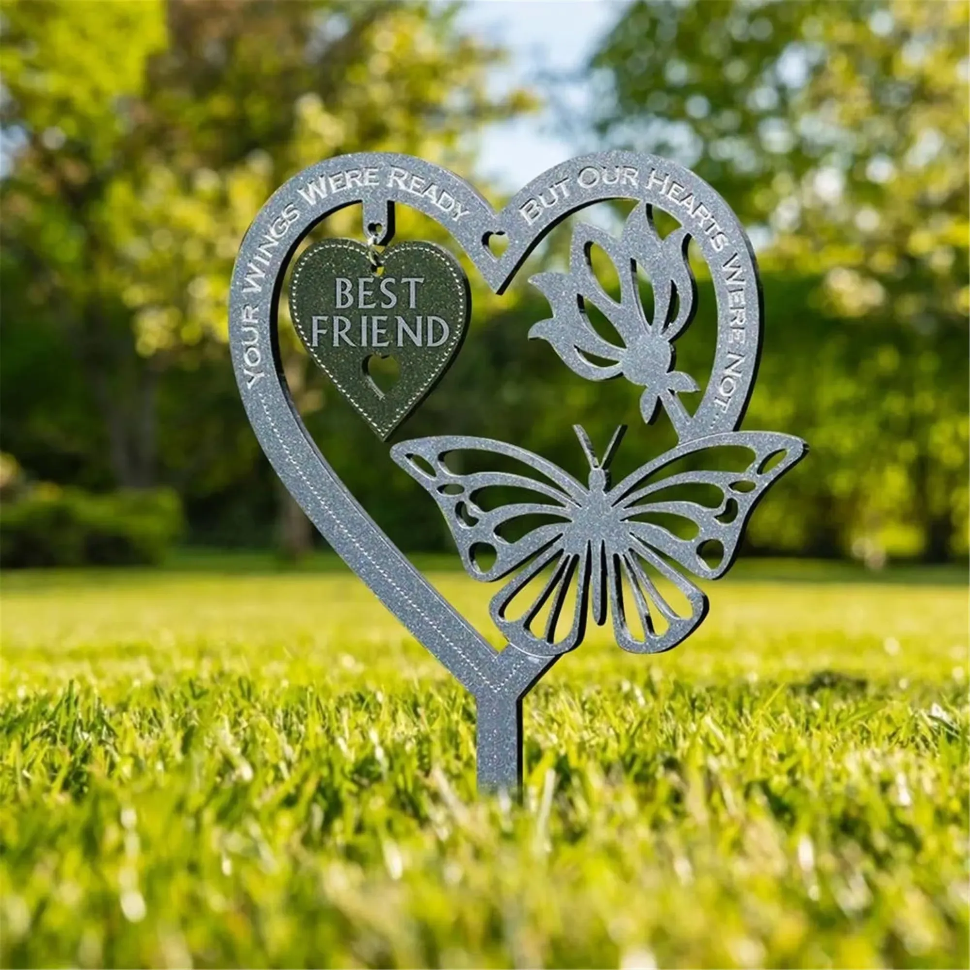🦋Heart&Butterfly has spiked, so it can be easily pushed into the ground. This is a thoughtful commemorative gift that can be used as a tombstone, commemorative plaque, or displayed in plants. Perfect souvenirs for mom, dad, grandpa, and grandma.