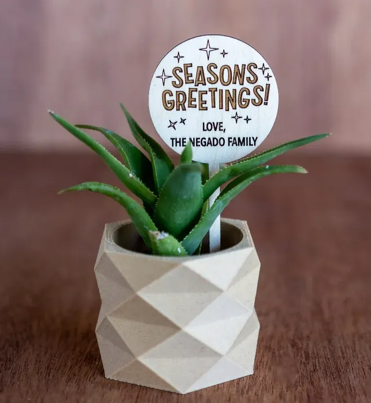 🎁Holiday wood succulent plant tags. Perfect for a gift for a coworker, neighbor or friend.
