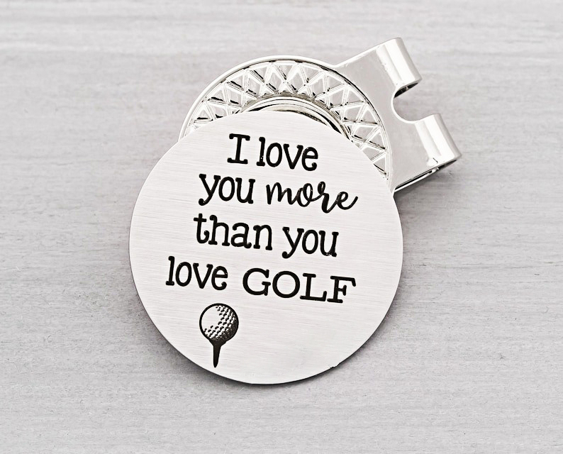 Let them know you're thinking of them while they're on the golf course with this golf ball marker and hat clip just for you.