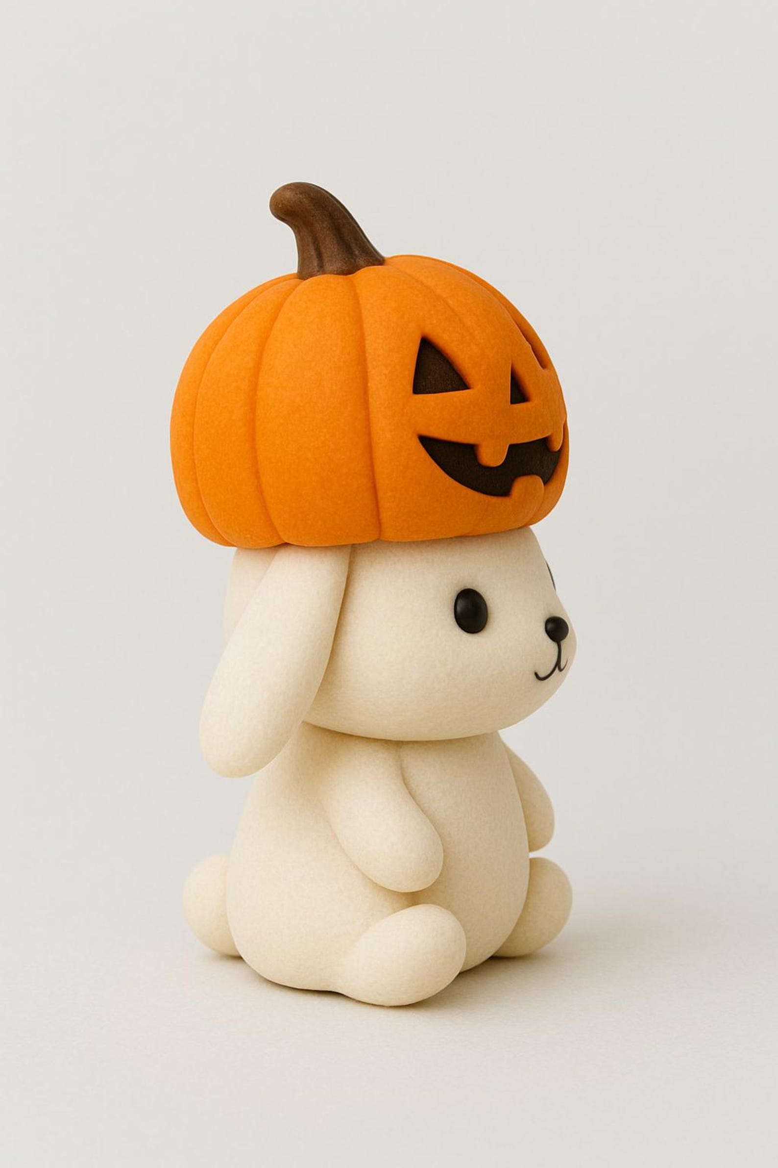 Charming Halloween-Themed Design: Features an irresistibly cute bunny adorned with a miniature, smiling Jack-o'-Lantern hat—a classic symbol of the season that is spooky-friendly and fun.