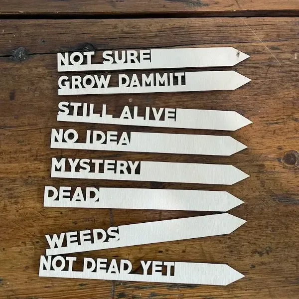 This set comes with the following markers:Still Alive, No Idea, Grow Dammit, Not Sure, Not Dead Yet, Still Alive, Weeds and Dead.