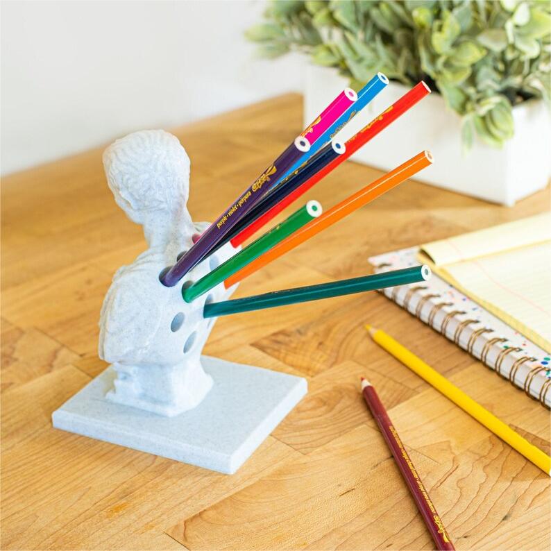 Our Julius Cesar pen holder is made of synthetic resin for durability. The durable material is eco-friendly and odorless, making it the perfect choice for long-term use without fading or deformation.