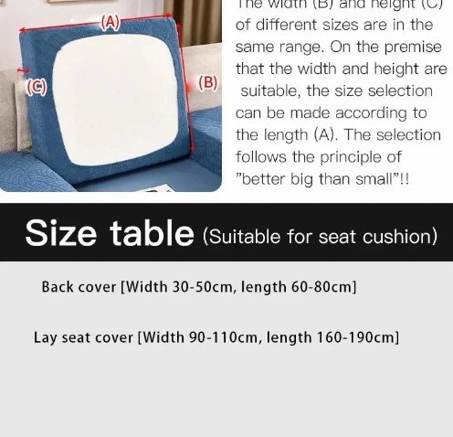 Stay in place: This sofa cover is applicable to any sofa in which there is a gap between the seats with a backrest and armrest. There are cloth strips which can be pushed down and under the sofa – as far as you can - to hold the cover in place.