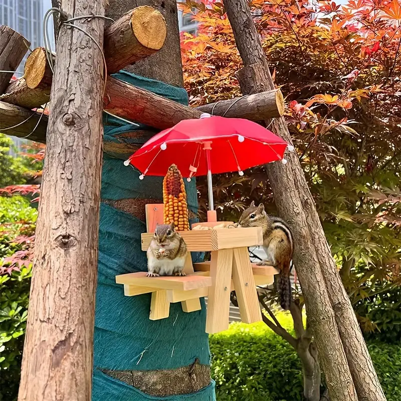 🤣Add a sprinkle of fun to your garden with the Squirrel Feeder with Umbrella! Watch squirrels and birds feast while staying dry under their own tiny umbrella. It's like a trendy bistro for woodland creatures!🐿️