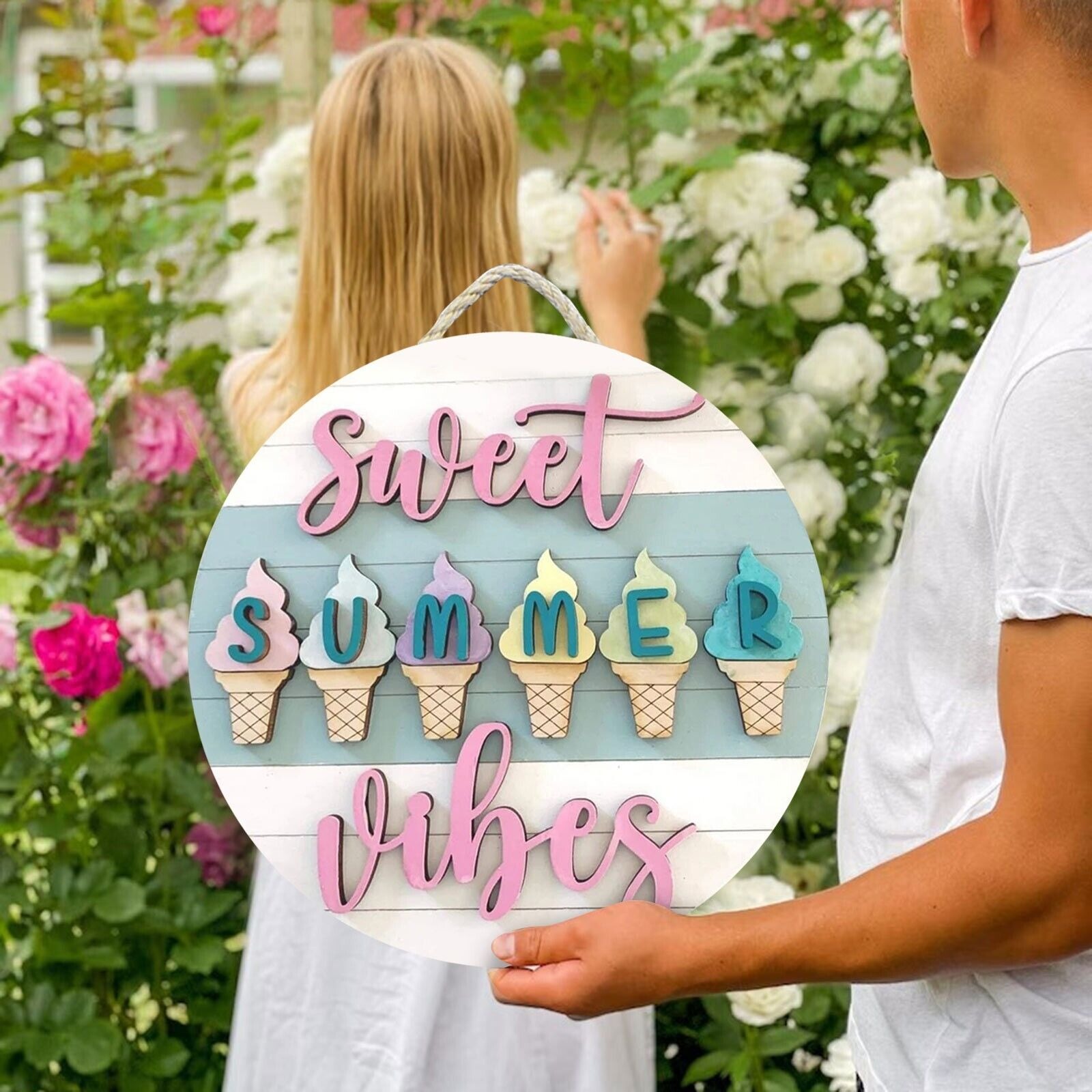 Nice workmanship: The round wooden hanging sign including hanging ropes, nice printing to achieve bright colors, life-like graphics to charm to your house, but also allows you to better feel the vitality of summer